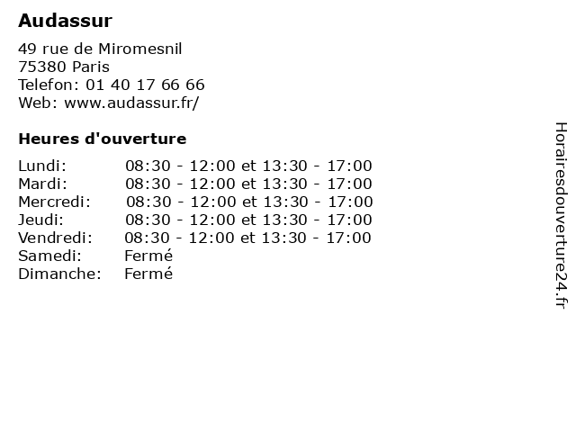 | Lundi | 08:30-12:00 et 13:30-17:00 |