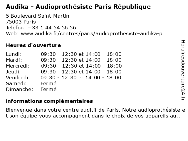 Termes de recherche pour Audika - Audioprothésiste Paris République:paris, republique, appareil auditif, audika, audioprothésiste, specialiste audition, audiologiste, centre auditif |