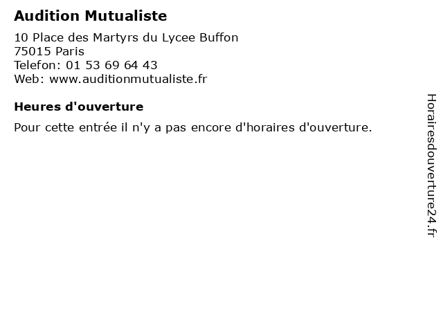 1 Audition Mutualiste (Distance: 2,98 km) 10 Place Paul Vaillant Couturier, 92130 Issy Les Moulineaux accessoires, aides auditives, audioprothésiste, audition, mutualiste, santé 2 Audition Mutualiste (Distance: 4,01 km) 12 Rue Van Gogh, 75012 Paris accessoires, aides auditives, audioprothésiste, audition, mutualiste, santé 3 Audition Mutualiste (Distance: 4,10 km) 54 Rue de Sévigné, 75003 Paris accessoires, aides auditives, audioprothésiste, audition, mutualiste, santé 4 Audition Mutualiste (Distance: 5,40 km) 20 Place du Marechal Juin, 35000 Rennes accessoires, aides auditives, audioprothésiste, audition, mutualiste, santé 5 Audition Mutualiste (Distance: 11,75 km) 30-32 Avenue de Verdun, 94000 Creteil accessoires, aides auditives, audioprothésiste, audition, mutualiste, santé 6 Écouter Voir Audition PARIS CINQ MARTYRS (Distance: 0,02 km) 10 Place des Cinq Martyrs du Lycée Buffon, 75015 Paris audition, cinq, martyrs, paris, voir, écouter |