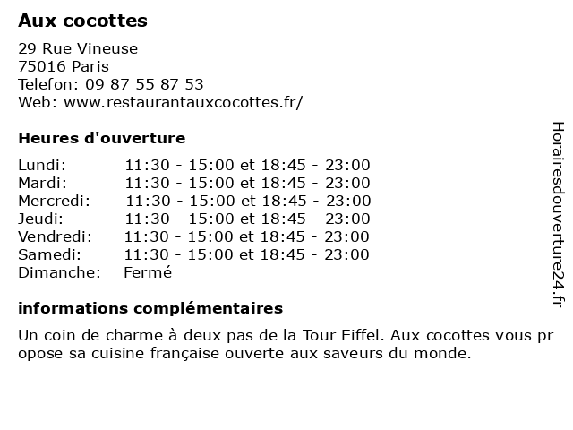 | Mardi | 11:30-15:00 et 18:45-23:00 |