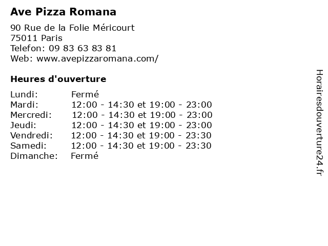 | Samedi | 12:00-14:30 et 19:00-23:30 |