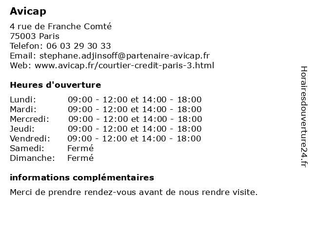| Lundi | 09:00-12:00 et 14:00-18:00 |
