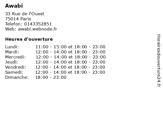 | Lundi | 11:00-15:00 et 18:00-23:00 |