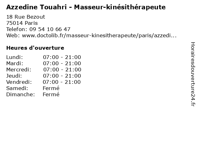 Termes de recherche pour Azzedine Touahri - Masseur-kinésithérapeute:medecine, secretariat, docteur, médecin, masseur, kinésithérapeute, azzedine, touahri |