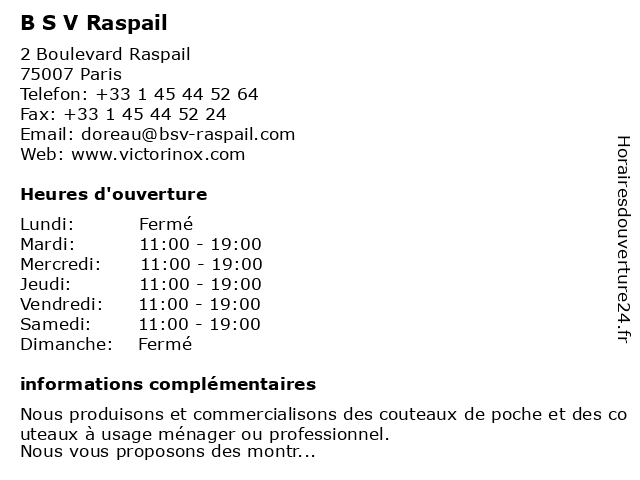 | Samedi | 11:00-19:00 |