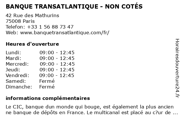 Termes de recherche pour BANQUE TRANSATLANTIQUE - NON COTÉS:banque, non, côtes, transatlantique |