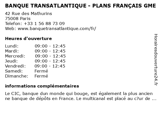 Termes de recherche pour BANQUE TRANSATLANTIQUE - PLANS FRANÇAIS GME:banque, français, plans, transatlantique, gme |