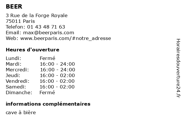 1 La Beer Fabrique (Distance: 1,38 km) 6 rue Guillaume Bertrand, 75011 Paris beer, brasseurs, conseils, fabrique, la, paris 2 Bar & Beer (Distance: 1,39 km) 4 Rue Du Charolais, 75012 Paris alcool, bar, beer, bières, boisson, café, soirée 3 Bar & Beer (Distance: 1,49 km) 48 Boulevard Ménilmontant, 75020 Paris bar, beer, boissons, cocktail, musique 4 Hall S Beer Tavern (Distance: 2,55 km) 68 Rue Saint Denis, 75001 Paris bar, beer, boissons, cocktail, hall, hall's, htb, musique, pub, restauran, tavern 5 Hall's Beer Tavern (Distance: 2,55 km) 68 Rue Saint Denis, 75001 Paris beer, boisson, brasserie, café, hall's, repas, restaurant, tavern 6 Restaurant Street Bangkok - Grill & Beer (Distance: 3,17 km) 73 Rue de Seine, 75006 Paris asiatique, bangkok, beer, grill, restaurant, street, thai, thailandais |