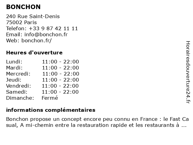 | Samedi | 11:00-22:00 |