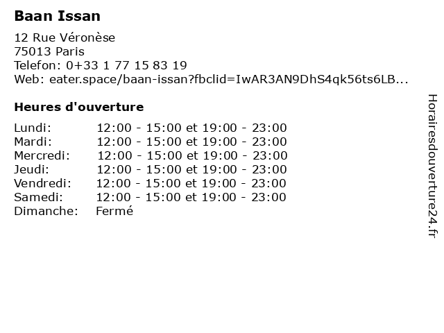 | Mardi | 12:00-15:00 et 19:00-23:00 |