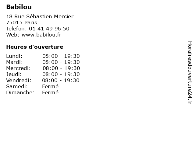 1 Babilou (Distance: 0,99 km) 3 Boulevard Exelmans, 75016 Paris babilou, babysitting, crèches, garde d'enfants 2 Babilou (Distance: 1,73 km) 25 Rue Leriche, 75015 Paris babilou, babysitting, crèches, garde d'enfants 3 Babilou (Distance: 1,98 km) 15 Rue Victor Hugo, 92130 Issy-les-Moulineaux babilou, babysitting, crèches, garde d'enfants 4 Babilou (Distance: 2,26 km) 6 Avenue Raymond Poincaré, 75016 Paris babilou, babysitting, crèches, garde d'enfants 6 Babilou (Distance: 2,64 km) 109 Avenue Victor Hugo, 75016 Paris babilou, babysitting, crèches, garde d'enfants |