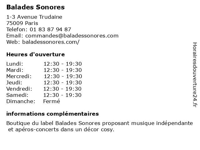 | Samedi | 12:30-19:30 |