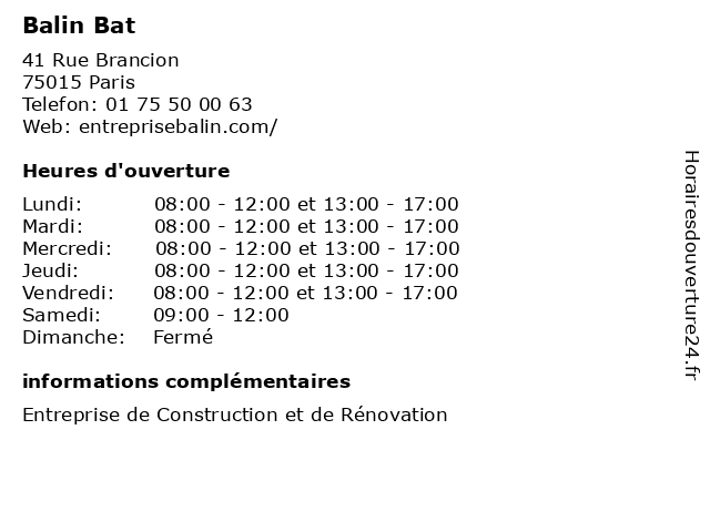 | Lundi | 08:00-12:00 et 13:00-17:00 |