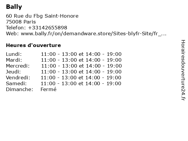 | Mercredi | 11:00-13:00 et 14:00-19:00 |