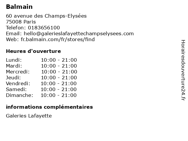 | Dimanche | 10:00-21:00 |