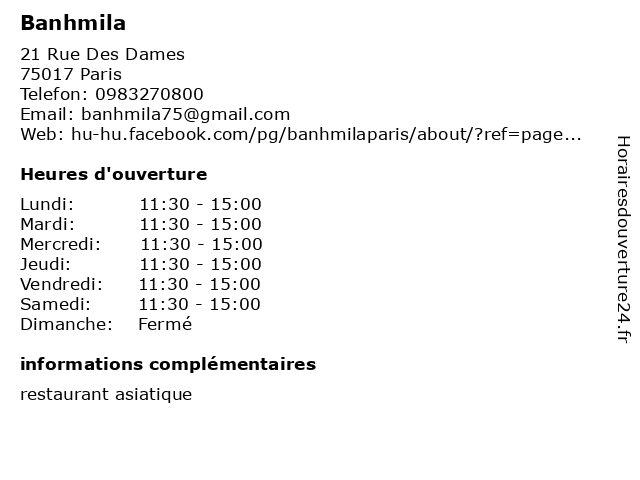 | Lundi | 11:30-15:00 |