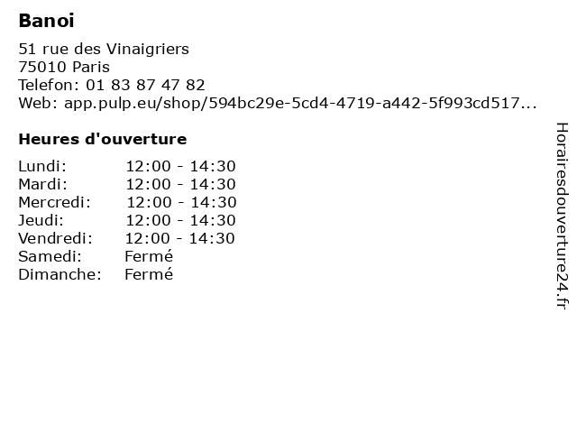 | Samedi | Fermé |