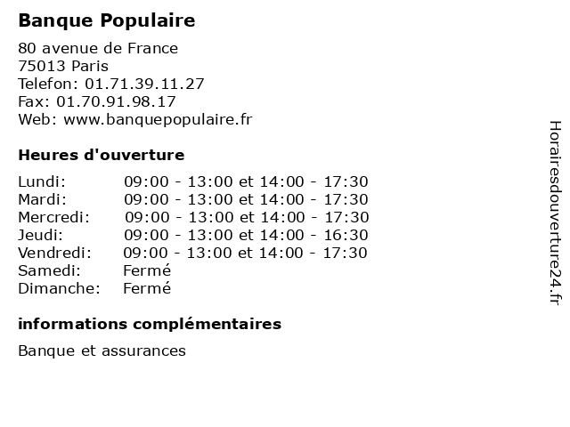 2 Banque Populaire (Distance: 4,00 km) 72 avenue de la République, 75011 Paris agence, argent, assurance, bancaire, banque, conseil, crédit, finances, populaire, pret 3 Banque Populaire (Distance: 4,03 km) 9-11 avenue Laplace, 94110 Arcueil agence, assurance, bancaire, banque, populaire 4 Banque Populaire (Distance: 4,03 km) 28 avenue Eugène Pelletan, 94400 Vitry-sur-Seine agence, assurance, bancaire, banque, populaire 5 Banque Populaire (Distance: 4,07 km) 113 rue d'Alésia, 75014 Paris banque, crédit, financement, populaire, épargne 6 |