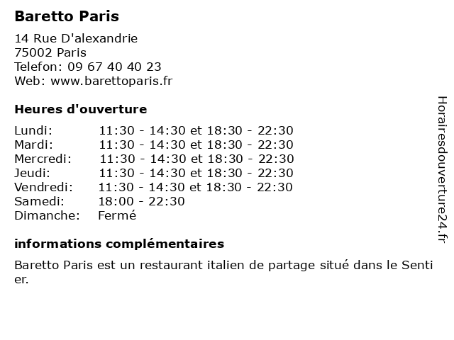 | Lundi | 11:30-14:30 et 18:30-22:30 |