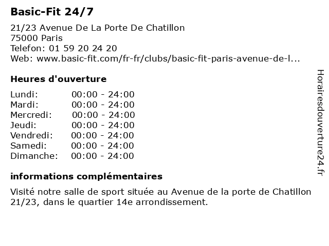 1 3 Basic-Fit 24/7 (Distance: 7,65 km) 380 Avenue De La Division Leclerc, 92290 Châtenay-Malabry 24/7, basic, fit 5 Basic-Fit 24/7 (Distance: 9,84 km) 3 Route Du Port De Gennevilliers, 92110 Clichy-la-Garenne 24/7, basic, fit 6 |