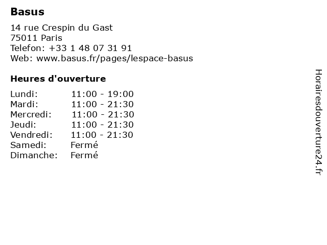 | Lundi | 11:00-19:00 |