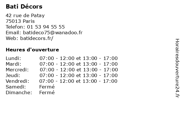 1 Bati Décors (Distance: 8,68 km) 86 bis avenue Roger Salengro, 94500 Champigny-sur-Marne bati, décoration, décors, matériel, outillages, peintures, pose, travaux 2 Bati Décors (Distance: 9,92 km) 2 rue Fulton, 94210 La-Varenne-Saint-Hilaire bati, décoration, décors, matériel, outillages, peintures, pose, travaux 3 Bati Décors (Distance: 14,38 km) 118 avenue Médéric, 93160 Noisy-le-Grand bati, décoration, décors, matériel, outillages, peintures, pose, travaux 4 Home Bati Services (Distance: 0,80 km) 12 Avenue Maurice Thorez, 94200 Ivry-sur-Seine bati, home, services 6 |