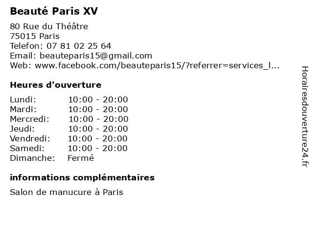 | Lundi | 10:00-20:00 |