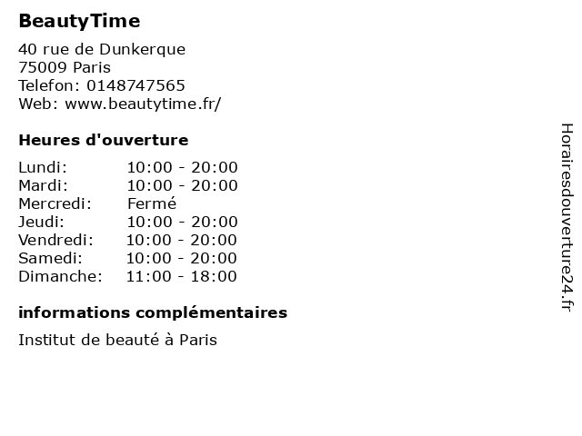 | Lundi | 10:00-20:00 |