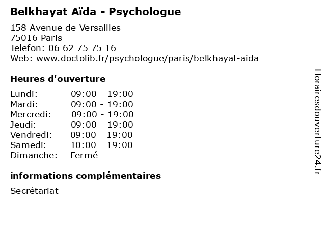 | Lundi | 09:00-19:00 |