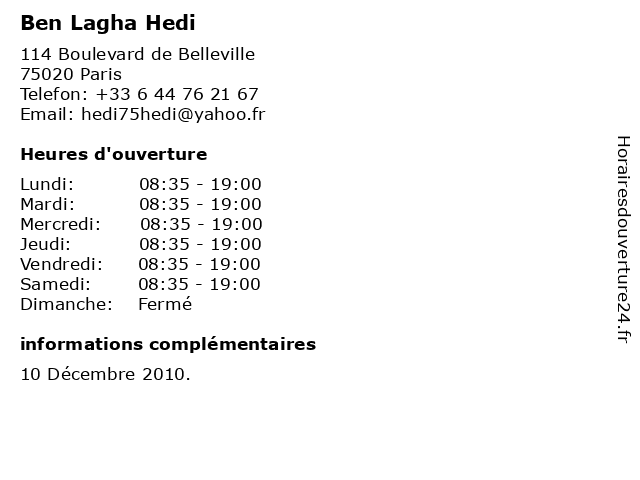 | Lundi | 08:35-19:00 |