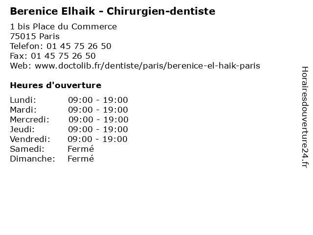1 Berenice Elhaik - Chirurgien-dentiste (Distance: 12,42 km) 19 Place de France, 91300 Massy berenice, chirurgien, dent, dentiste, docteur, elhaik, soins 2 Alexane Elhaik - Chirurgien-dentiste (Distance: 0,00 km) 1 bis Place du Commerce, 75015 Paris alexane, chirurgien, consultation, dentiste, docteur, elhaik, med, médecin, médecine, secrétariat, traitement 3 Berenice (Distance: 0,81 km) 12 De Linois, 75015 Paris beaute, berenice, cafe, chaussures, enfants, mode femmes, mode hommes, restaurant, sport 4 Berenice wandres (Distance: 1,16 km) 67 Rue Balard, 75015 Paris berenice, la beauté, le style, les soins, wandres 5 Maître Alexandra Atlan-Elhaik - Avocate (Distance: 2,24 km) 5 Rue Saint Didier, 75116 Paris alexandra, atlan, avocate, avocats, cabinet, conseils, contentieux, elhaik, juridique, justice, litiges, maître, services 6 Dr Raquel Elhaik - Chirurgien-dentiste (Distance: 2,35 km) 8 Rue Chanez, 75016 Paris chirurgien, dentaire, dentiste, dr, elhaik, implantologie, parodontologie, raquel |
