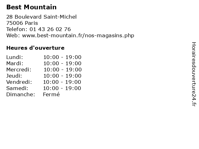 1 Best Mountain (Distance: 2,63 km) 21 Rue Auber, 75009 Paris best, best mountain, femme, homme, magasin, mountain 2 Best Mountain (Distance: 17,99 km) 134 Avenue de la Plaine de France, 95500 Gonesse beaute, best, bijoux, chaussures, enfants, maison, mode femme, mode homme, mountain, restaurant, service, sport 3 Hôtel Le Jardin de Cluny - Best Western (Distance: 0,36 km) 9 Rue du Sommerard, 75005 Paris best, chambre, cluny, de, hebergement, hotel, hôtel, jardin, le, western 4 Hôtel Ducs de Bourgogne - Best Western Premier (Distance: 0,92 km) 19 Rue du Pont Neuf, 75001 Paris accès, best, bourgogne, de, ducs, et, hebergement, hotel, hôtel, premier, réception, western 5 Hôtel Best Western (Distance: 1,38 km) 124 Rue de Rennes, 75006 Paris accès, best, et, hebergement, hotel, hôtel, réception, western 6 Hotel Best Western Gaillon Opera (Distance: 1,95 km) 9 Rue Gaillon, 75002 Paris best, cafe, gaillon, hotel, opera, restaurant, service, western |