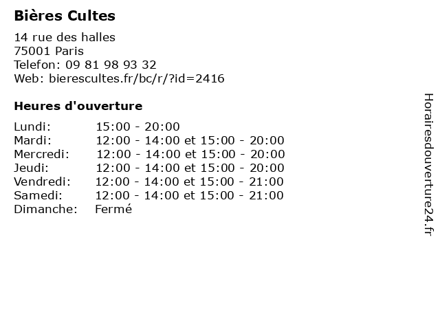 | Mercredi | 12:00-14:00 et 15:00-20:00 |