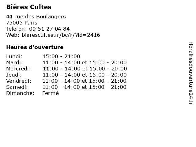 | Mercredi | 11:00-14:00 et 15:00-20:00 |