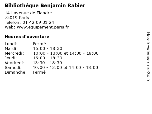 | Mercredi | 10:00-13:00 et 14:00-18:00 |