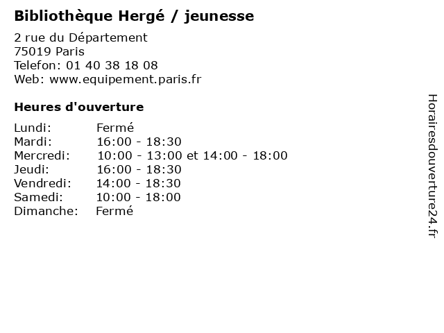 | Mercredi | 10:00-13:00 et 14:00-18:00 |
