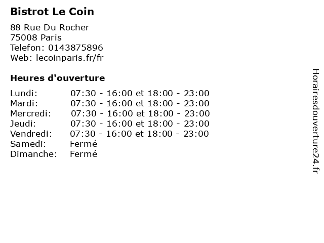 | Mardi | 07:30-16:00 et 18:00-23:00 |