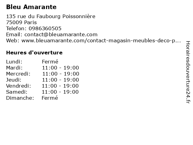| Samedi | 11:00-19:00 |
