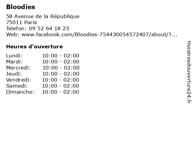 | Lundi | 10:00-02:00 |