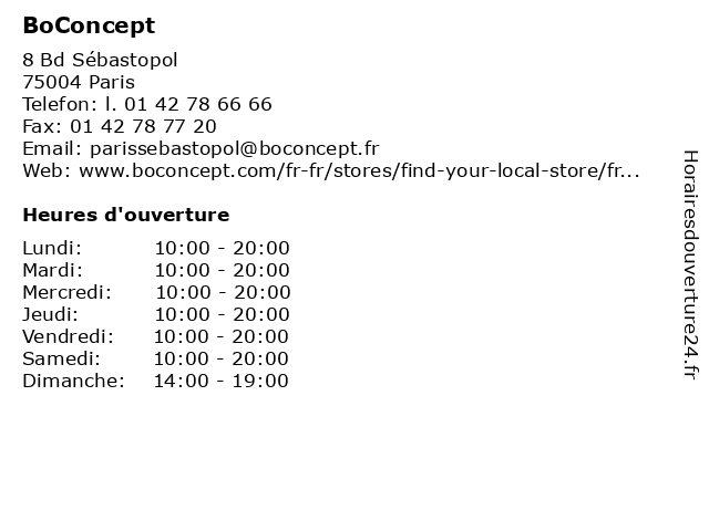 1 BoConcept (Distance: 0,49 km) 43bis Rue Etienne Marcel, 75001 Paris boconcept, déco, fauteuil, meubles, mobilier, tables 2 BoConcept (Distance: 1,49 km) 61, rue de Rennes, 75006 Paris boconcept, contemporain, de l'intérieur, de luxe, la décoration, le service, meubles, moderne 3 BoConcept (Distance: 2,19 km) 64, boulevard Haussmann, 75009 Paris boconcept, contemporain, de l'intérieur, de luxe, la décoration, le service, meubles, moderne 4 BoConcept (Distance: 4,31 km) 39-41, avenue de Wagram, 75017 Paris boconcept, contemporain, de l'intérieur, de luxe, la décoration, le service, meubles, moderne 5 Boconcept (Distance: 4,98 km) 12 rue de Linois, 75015 Paris art de la table, boconcept, décoration, magasin, meubles 6 BoConcept (Distance: 9,15 km) 16 rue de Lisbonne, 93562 Rosny-Sous-Bois boconcept, canapé, déco, fauteuil, habitat, mobilier, tables |