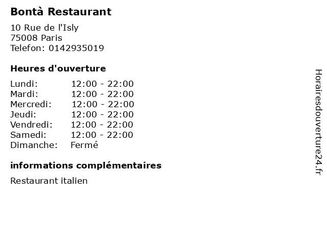 | Lundi | 12:00-22:00 |