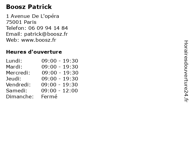 1 Dr Patrick Leteissier - Stomatologue (Distance: 0,18 km) 13 Avenue de l'Opéra, 75001 Paris consultation, docteur, dr, leteissier, med, médecin, médecine, patrick, secrétariat, stomatologue, traitement 2 Maître Patrick Chauvin - Avocat (Distance: 0,19 km) 28 Bis rue de Richelieu, 75001 Paris avocat, avocats, cabinet, chauvin, conseils, contentieux, juridique, justice, litiges, maître, patrick, services 3 Tardieu Patrick (Distance: 0,41 km) 1 Rue Jean Jacques Rousseau, 75001 Paris patrick, restaurants, tardieu 4 Dr Patrick Seroussi - Dentiste (Distance: 0,71 km) 242 Rue de Rivoli,, 75001 Paris care, clinic, dentiste, dr, medecin, patrick, seroussi 5 Patrick Roger Chocolatier (Distance: 1,40 km) 2-4 place Saint Sulpice, 75006 Paris chocolaterie, chocolatier, chocolats, patrick, roger 6 Dr. Patrick Hayat - Médecine générale (Consultation sur rendez-vous) (Distance: 1,46 km) 10 rue de maubeuge, 75009 Paris consultation, docteur, dr., générale, hayat, médecine, patrick, rendez, santé, sur, vous |