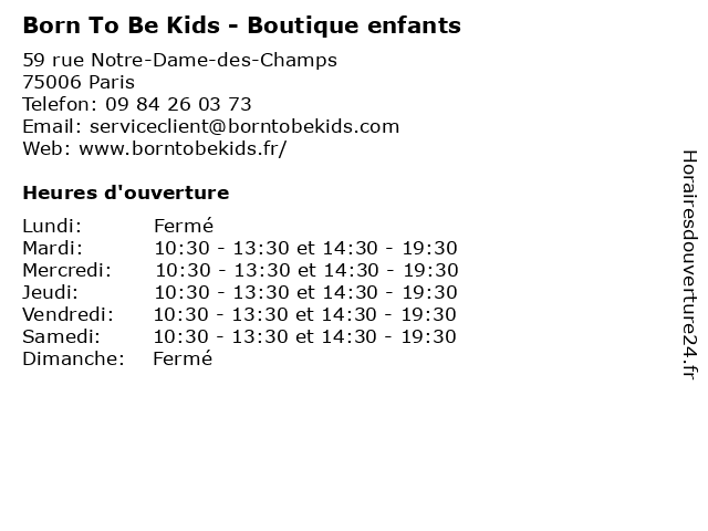 | Samedi | 10:30-13:30 et 14:30-19:30 |