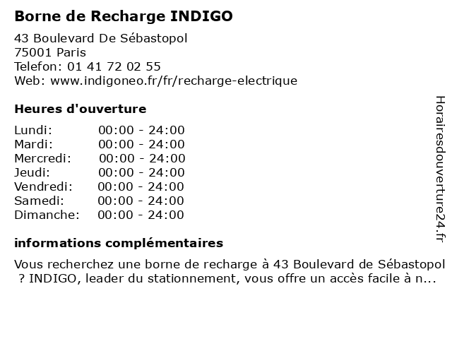 1 Borne de Recharge INDIGO (Distance: 0,47 km) 149 Rue Saint Denis, 75002 Paris borne, de, indigo, recharge 2 Borne de Recharge INDIGO (Distance: 0,65 km) 1 Place Du Louvre, 75001 Paris borne, de, indigo, recharge 3 5 Borne de Recharge INDIGO (Distance: 1,33 km) 1 Avenue Du Général Lemonnier, 75001 Paris borne, de, indigo, recharge 6 Borne de Recharge INDIGO (Distance: 1,52 km) 171 Boulevard Saint-germain, 75006 Paris borne, de, indigo, recharge  |