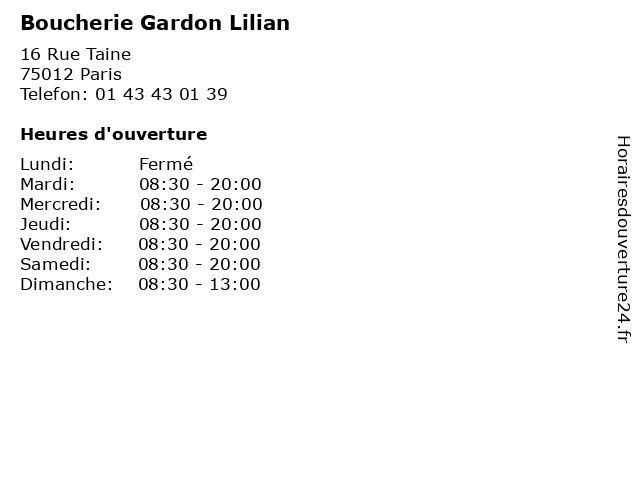 | Lundi | Fermé |