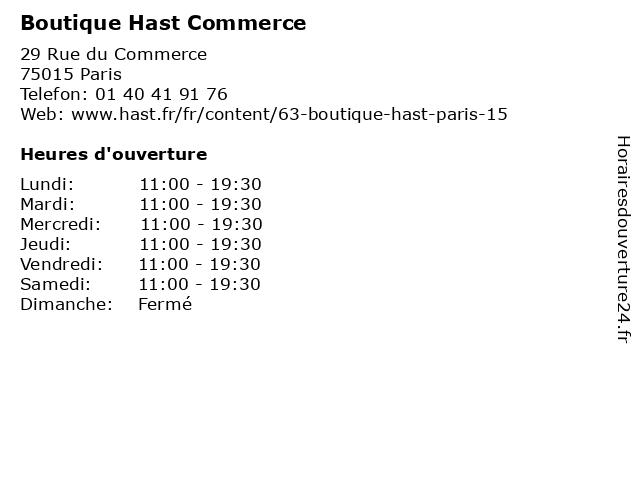 | Samedi | 11:00-19:30 |
