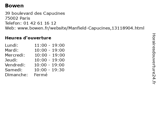 1 Bowen (Distance: 0,51 km)9 boulevard Malesherbes, 75008 Paris bowen, chaussures, magasins, mode