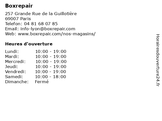 | Lundi | 10:00-19:00 |