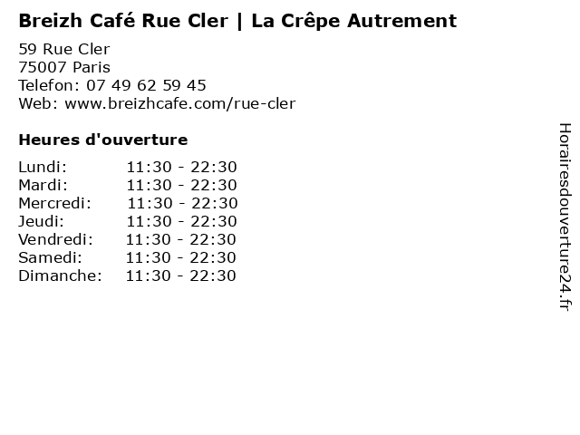 | Jeudi | 11:30-22:30 |