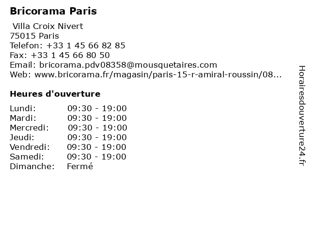 5 Bricorama (Distance: 0,09 km) 23, Rue Amiral Roussin, 75015 Paris bricorama, enfants.chaussures, lingerie, mode hemmes, mode homme 6 |